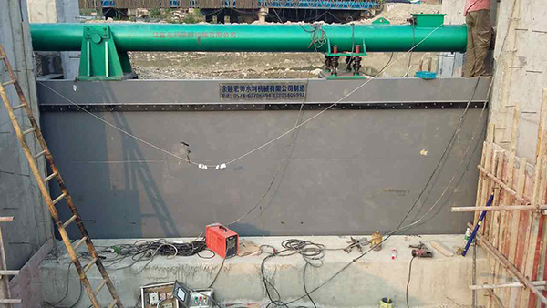 先把下層?xùn)朋w(鏈條、齒耙組合)供應(yīng)商鋼壩閘門用汽車吊起來并運送到孔中,通過在上游對柵欄體施加一定的水平力,使其與鉛垂垂面傾斜15°,沿著軌道下降,通過清洗機(jī)鎖定了鎖定裝置。